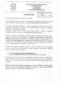 • Важно обавештење за родитеље будућих првака
