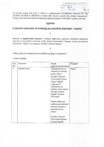 • Одлука о избору уџбеника за период од школске 2026/2027. године