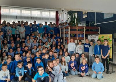 Ученици наше школе, на иницијативу Тима за заштиту, обележили су Светски дан детета у свечаном и ведром духу. Читаво двориште и ходници били су обојени у плаво – боју која симболизује дечја права, радост, заједништво и наду. Крoз ову манифестацију ученици су нас подсетили колико је важно да свако дете одраста уз љубав, подршку и осећај сигурности.