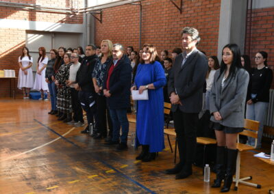 Свечана примопредаја протекла је у сјајној атмосфери. Гости су имали прилику да виде уживо баскет утакмицу наших ученика на новом терену, чују изјаве представника компаније и школе о значају улагања у спорт, а програм је употпуњен наступом школског хора.