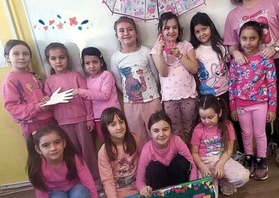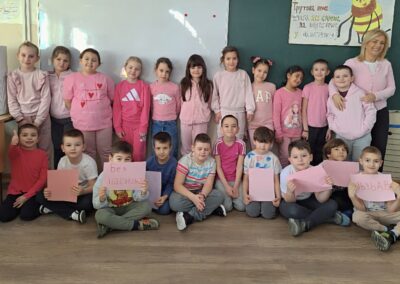 Најмлађи ученици су кроз разговор, симболичне активности и заједничке поруке подршке учили како да препознају насиље и како да буду добри другови. Истовремено, Вршњачки тим школе је, уз подршку педагога, радио на осмишљавању акционог плана који ће бити усмерен на превенцију вршњачког насиља и јачање позитивне школске климе.