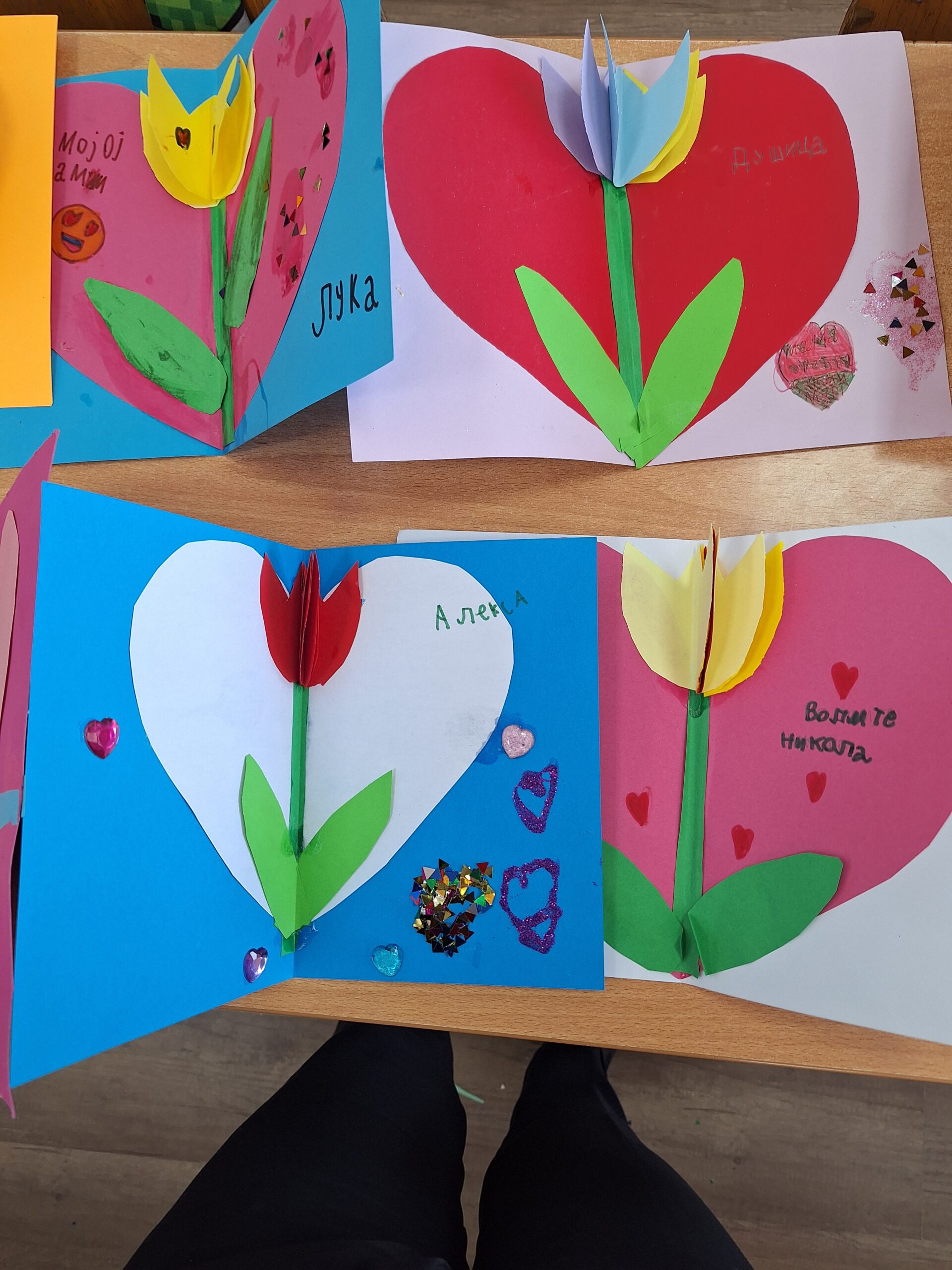 Своја осећања и лепе жеље прваци су преточили у шарене цртеже и честитке. Уз много маште, боја и дечјих порука љубави настали су радови који на најлепши начин показују колико су пажња, доброта и захвалност важни.