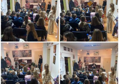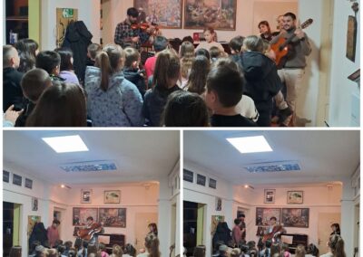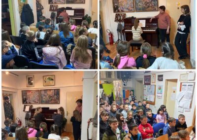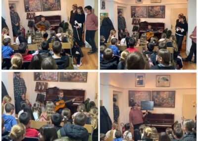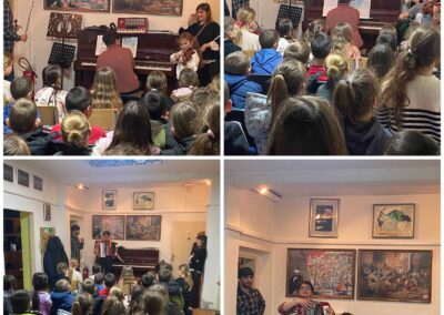 Током посете, ученици и наставници музичке школе приредили су два промотивна концерта на којима су представљени различити музички инструменти: виолина, виолончело, гитара, флаута, хармоника и клавир. Ученици су имали прилику да чују како сваки од ових инструмената звучи, али и да сазнају више о њиховим деловима и начину на који се производи звук.
