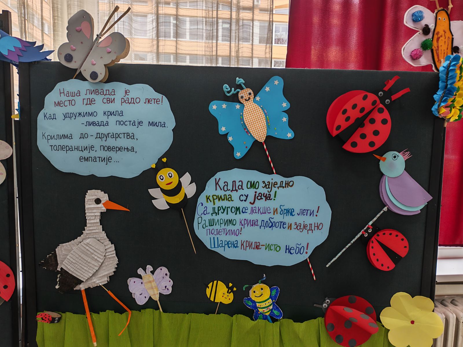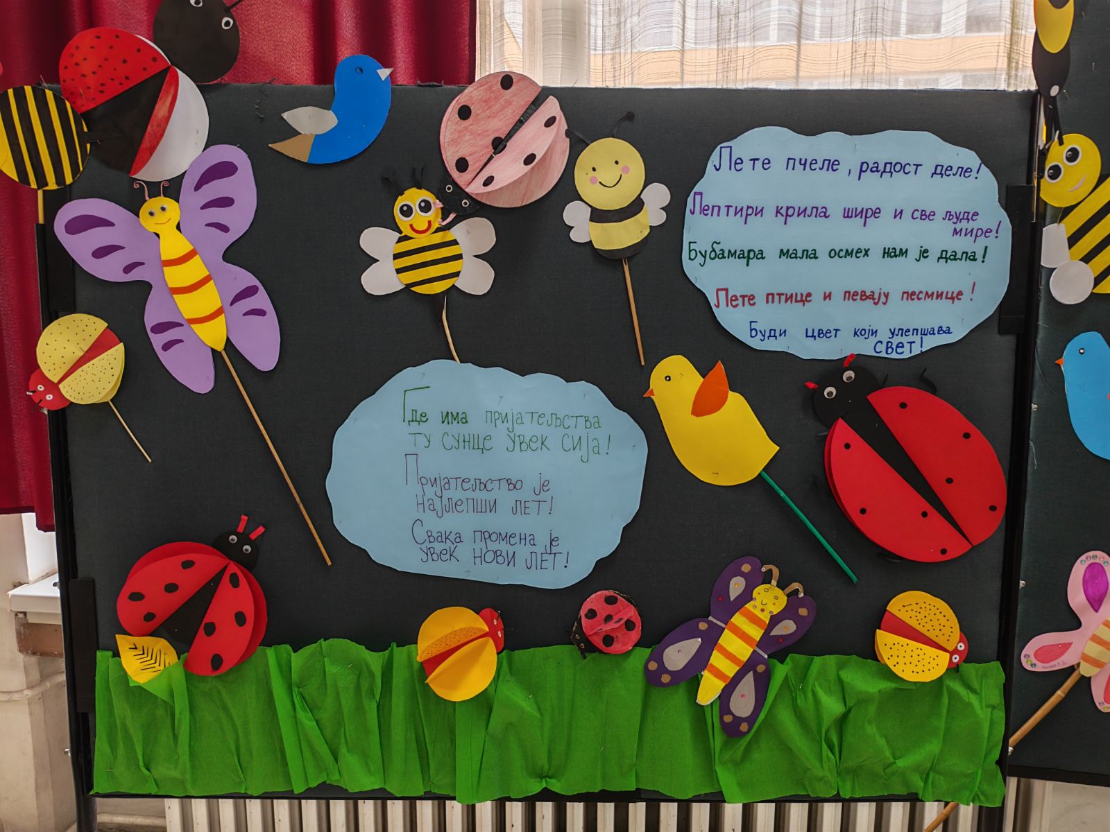 ,,Будимо добри као бубамаре,вредни и удружени као пчелице, позитивни као лептири и весели као птичице.Заједнички лет улепшава свет”